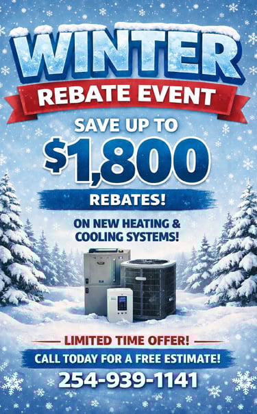 Right here! We keep this page updated whenever new rebates come out. You can also call our office at 254-939-1141 and we’ll let you know what promotions are available.